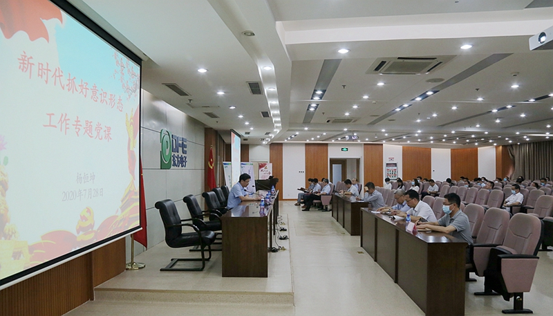表彰颁奖结束后,公司党委书记杨恒坤为大家讲了新时代抓好意识形态工作专题党课,杨书记结合当前国内外政治经济形势,充分阐述了现阶段抓好意识形态工作的重要性和必要性。他强调,意识形态工作本质上是政治工作,要旗帜鲜明讲政治,增强“四个意识”,做到“两个维护”。要坚持以人民为中心的工作导向,为党的中心工作服务,要加强正面宣传,营造强大的正面思想舆论。他指出,新时代意识形态领域形势依然错综复杂,面临的风险挑战依然严峻,我们必须牢牢掌握意识形态工作领导权,坚持党管意识形态,党管宣传,切实抓好意识形态工作责任制落实,巩固全党全社会思想上的团结统一。