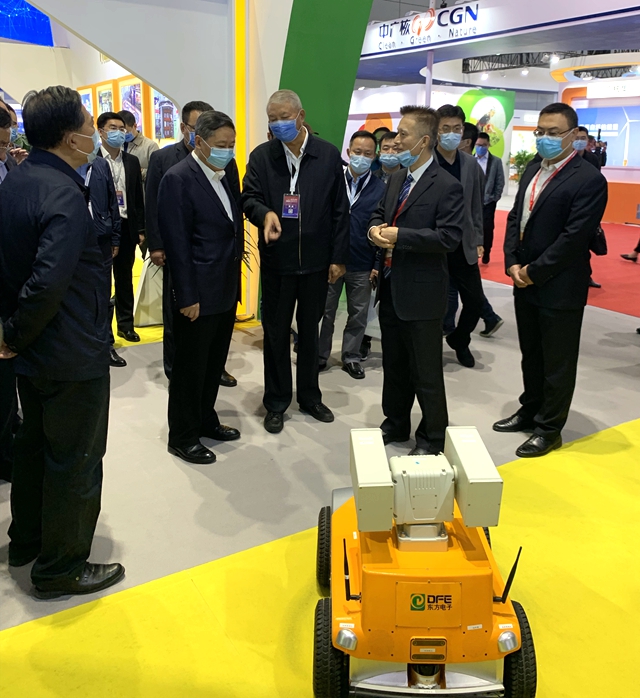 烟台市委书记张术平一行参观了酒泉富康天宝文化旅游有限公司展厅,详细询问了公司自主研发的智能巡检机器人及其它模块装置。股份公司副总经理陈勇代表公司向领导及嘉宾汇报了公司在核电领域的新技术、新成果,充分表达了公司服务中国核电的信心和决心。
